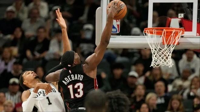 再第三节末,阿德巴约与维金斯一起下去,哈梅斯如内线碰运气未遂,马刺拉开。